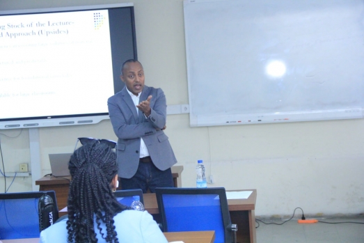 The workshop's facilitator, Dr. Yamlaksira Getachew, an Associate Professor of Strategy at Babson College, led detailed discussions on several key topics. These included "Taking Stock of the Lecture-Based Approach," "The Case-Based Approach," "Applying the Case-Based Approach," "The Value of the Case-Based Approach," the "39 Country Initiative," the "Ivey Publishing Case Collection," and "Case-Based Education." Participants actively engaged in the sessions, raising various points and holding extended discussions on the topics presented by Dr. Yamlaksira .